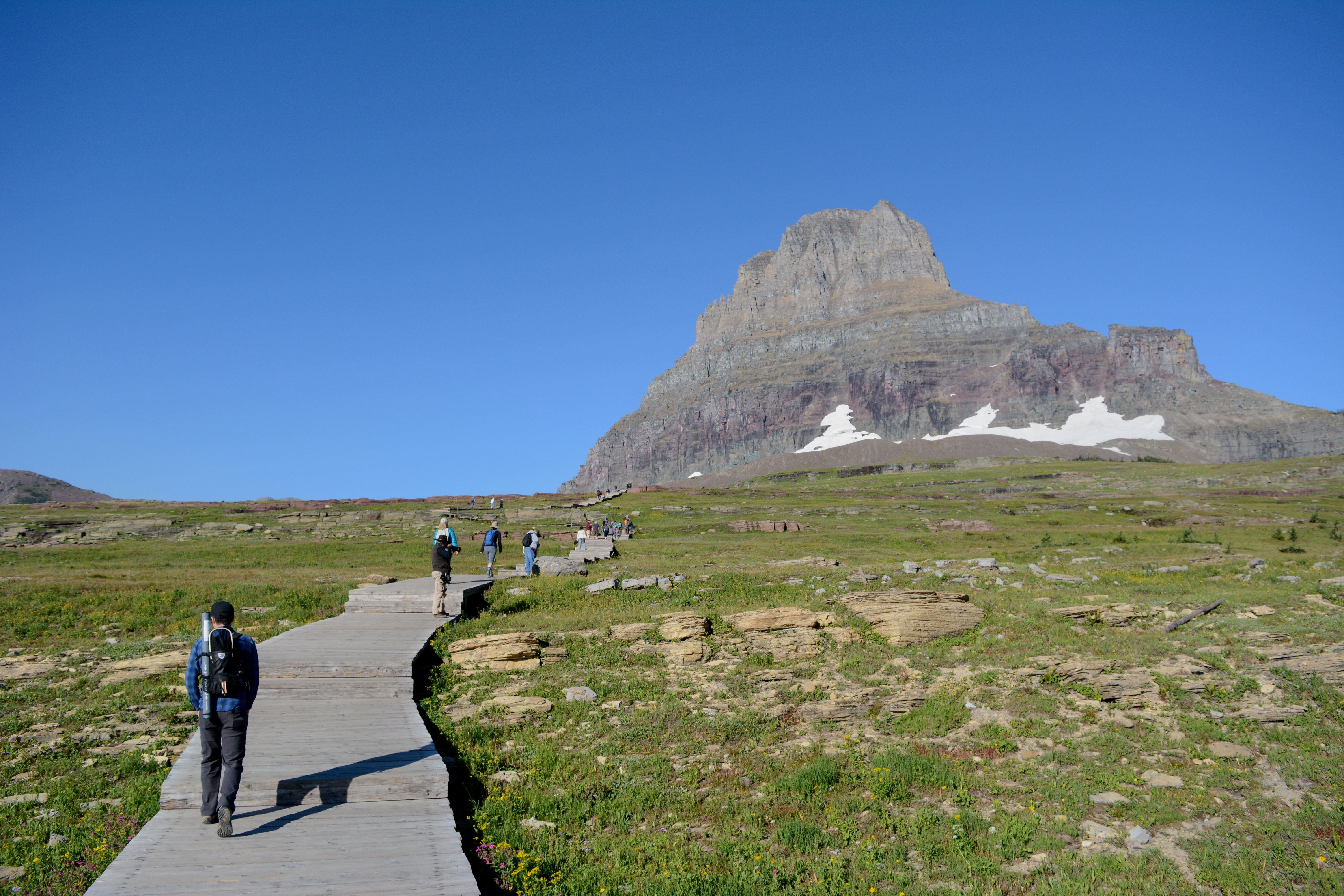 Glacier has a transit system that takes you along Going-to-the-Sun Road, over the Continental Divide, and into East Glacier. This road hugs the mountain range and is only a two lane road. Instead of driving, we opted for the free shuttle to Logan Pass parking area, which is at the top of the divide.