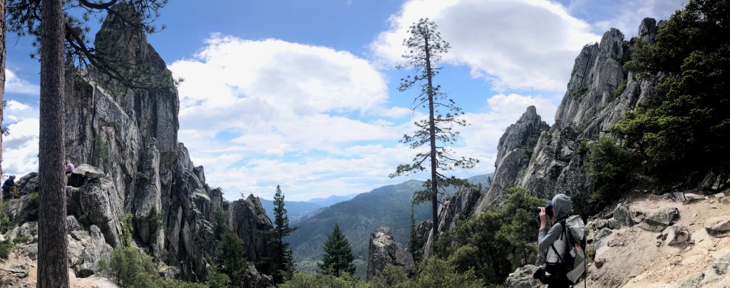 We chose to take *Crags Trail and head to Castle Dome, which AllTrails lists as a 5.2 out and back trail. On the trail, we realized that it is a bit longer than that to get up to the actual Dome. We followed the map to an overlook, but the trail was a bit longer to the Dome. This mileage combined with our mile walk up and back from the campground landed us around a ~7-7.5 mile trek.