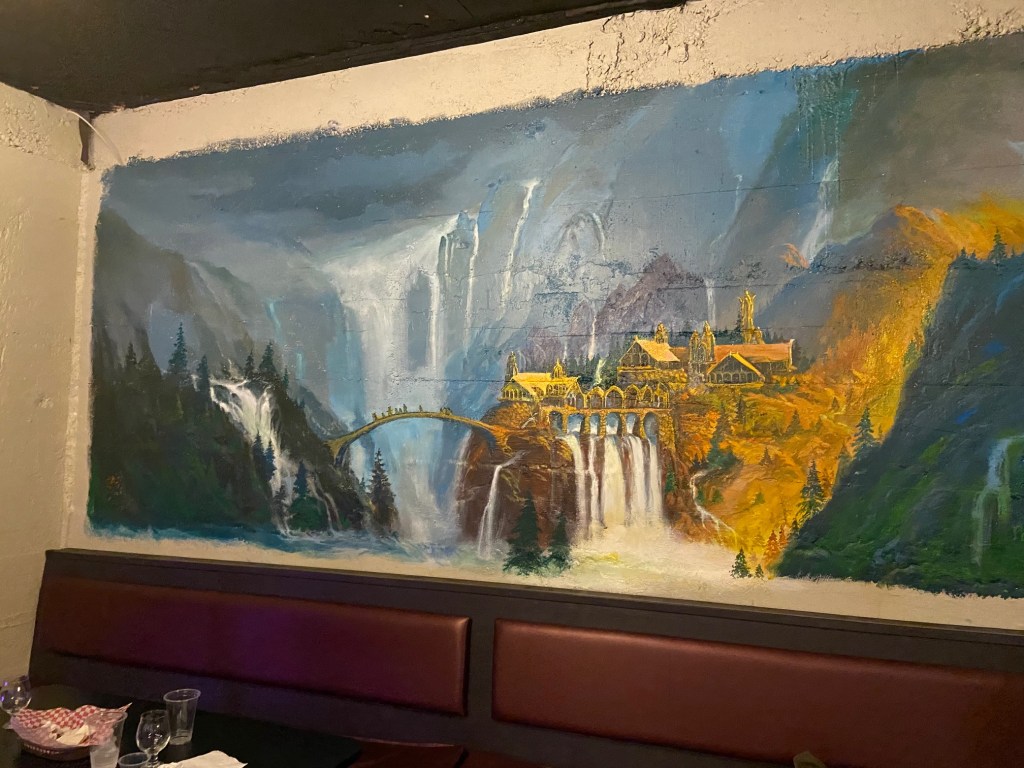 We arrived around 7, so we set up camp then went back into town- wanting to check out this brewery on the main strip before they closed. Misty Mountain Brewing is a fantasy-themed brewery. Located downstairs from the main shops, it’s a hole in the wall place with several beers on tap and unique decor. The beer was well worth it!