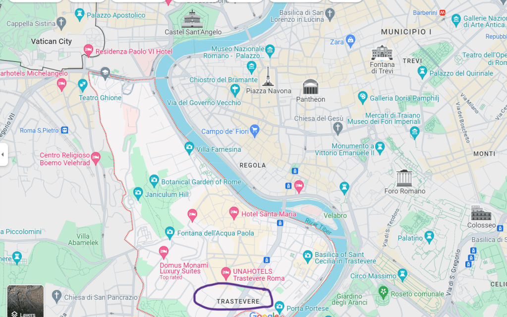 Day 2 was spent visiting the Vatican Museums, including the Sistine Chapel. We booked a guided tour through the museum. I would go back to Rome to just visit the museums again. After our tour, we walked over to the city center and visited the Trevi Fountain. We spent most of our afternoons/evenings in Trastevere.