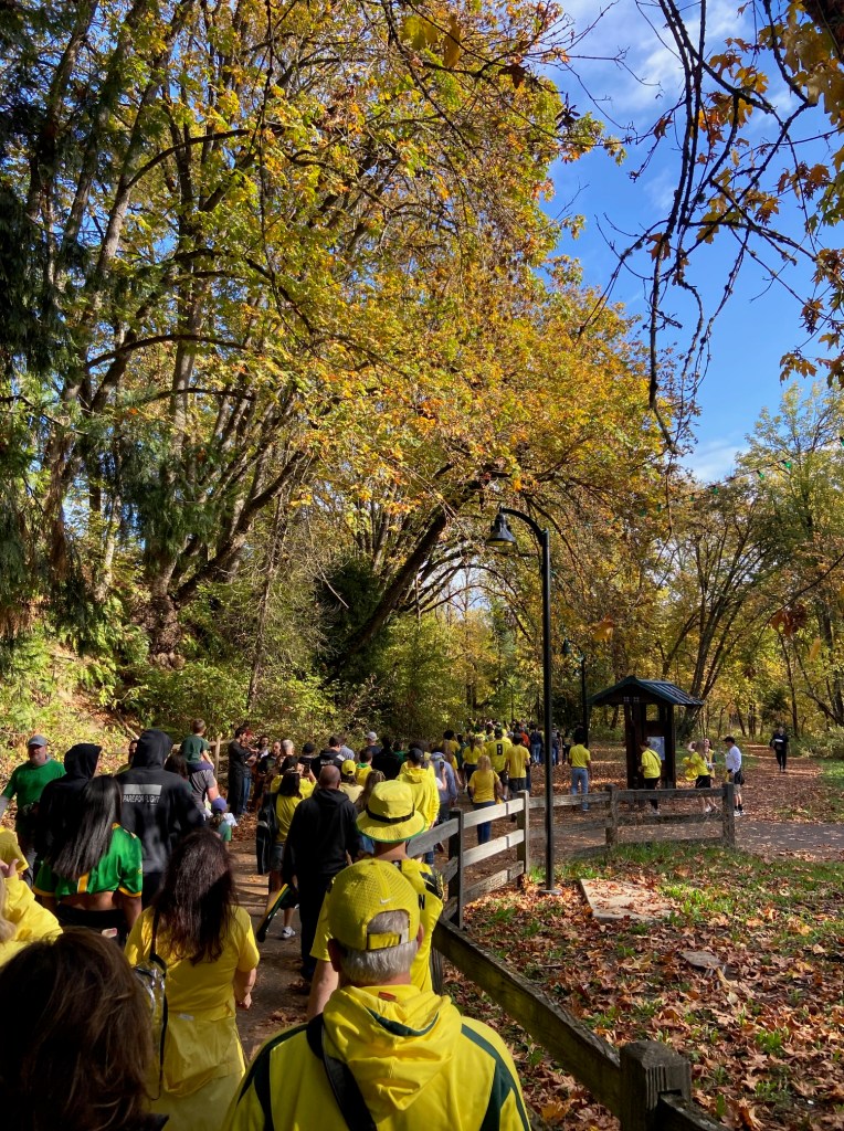 The campus is also located within walking distance of downtown Eugene and fall is the perfect time to visit! The leaves are changing and the walk to the Autzen Stadium through Alton Baker Park can’t be missed!