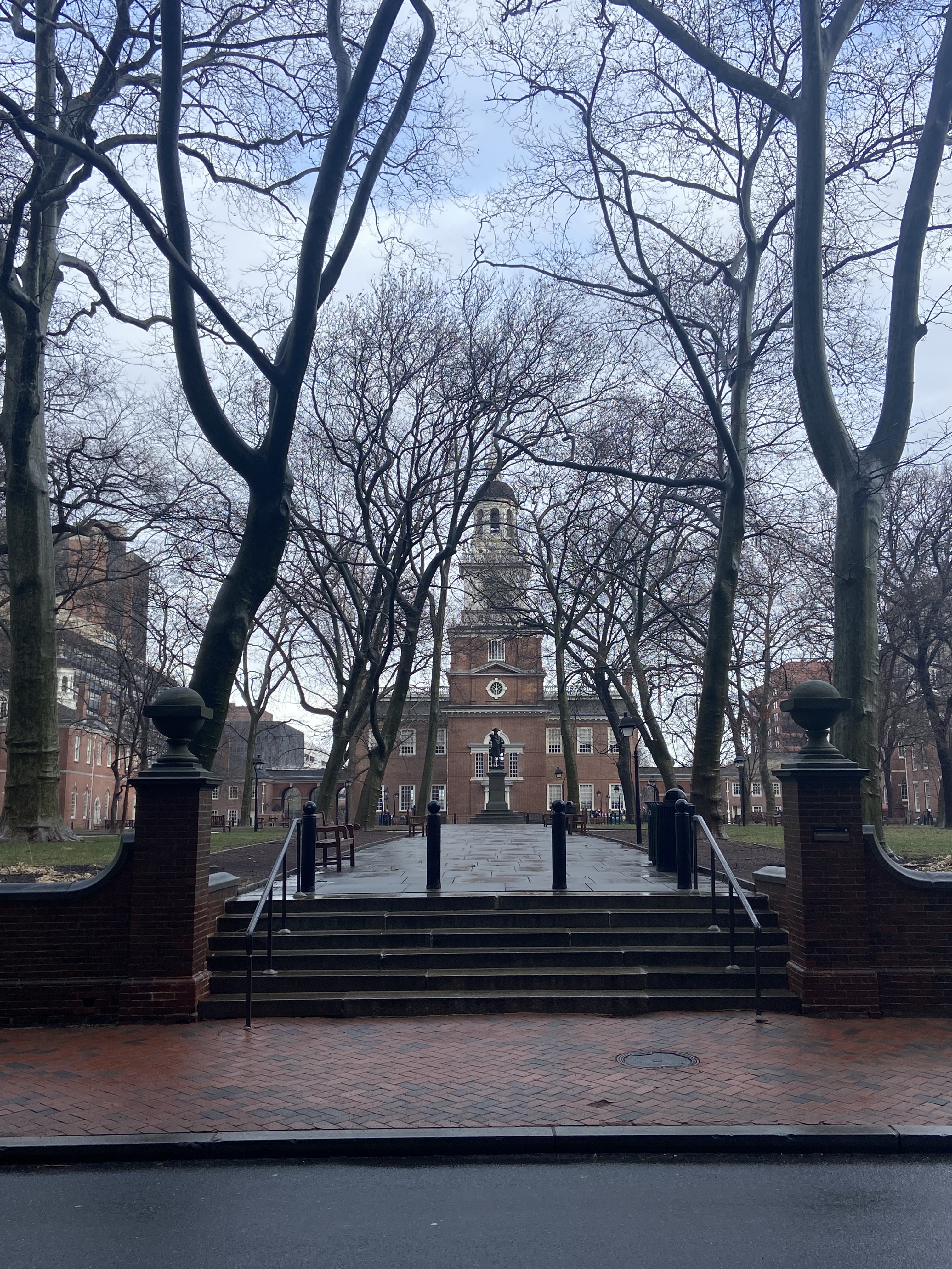Bright and early, we had a quick coffee and set off to Philly to check out the Liberty Bell, Independence Hall, and the Tomb of the Unknown Soldier. All of these sites are part of the larger Independence National Historical Park. For breakfast, we had delicious Irish coffees and pizza! (Yes, pizza!) at the Society Hill Hotel across from the Museum of the American Revolution.